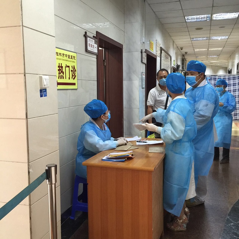 6月8日,有10名随团来桂旅游的发热患者到我院急诊科就诊,他们均为马来西亚籍人士,其个别患者在入境前就有低热症状,到达我市后发热患者迅速增多并出现高热病例,同时伴有咳嗽、呕吐症状。鉴于这些患者病因不明,且存在群体爆发状况,情况紧急,急诊科在接诊患者后,第一时间启动应急预案,在有限的条件下,利用防火门、屏风、警戒线,迅速建立临时隔离病区将患者集中安置,紧急调配休息的医护人员赶回科室支援。并马上成立专门医护小组,开通绿色通道为所有患者进行相关检查及诊疗。同时向医院主管部门汇报情况,联系院内专科及院外专家到科室进行会诊。最终经市疾病预防控制中心采样检测,这些患者均诊断为甲型H1N1流感,经对症治疗后,他们的症状均有所好转,并在病情稳定后离院。